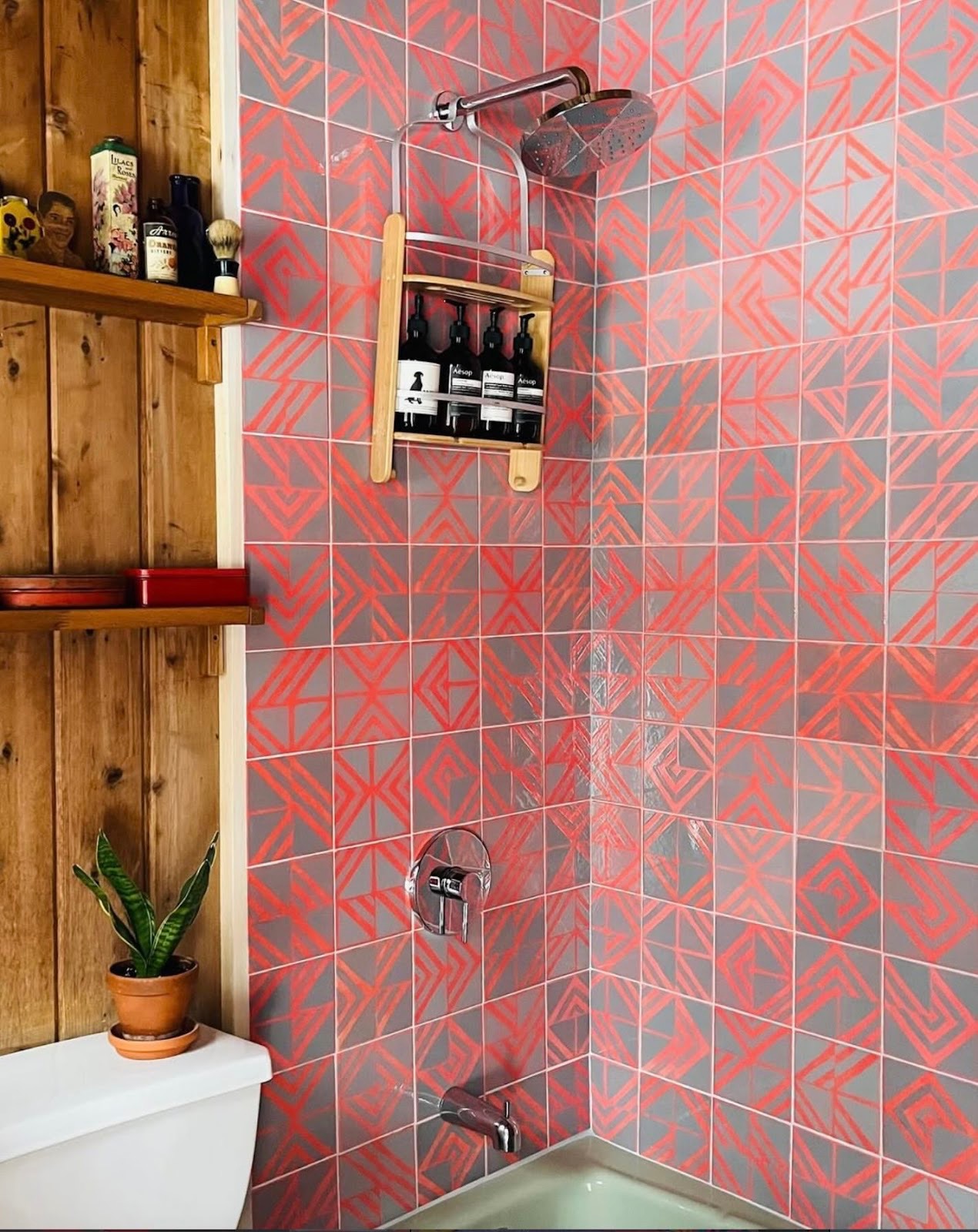 The previous owner, Marcy, is an upstate artist who lived in the house for years. Her handmade tile, behind the stove and in the bathroom, is delicate, geometric, and unique—a piece of art quietly integrated into everyday life. When it came time to design a logo for the chalet, Peter and his wife didn’t reinterpret the tile—they asked to use it directly, offering a weekend stay in return. It was a small gesture, but it connected past and present, giving the house a continuity that feels rare.