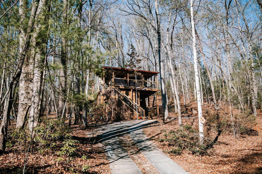 Tucked into a forested hillside above Sautee Nacoochee, Hickory Hill Retreat earns its name. Arriving via a gravel mountain road beneath hardwoods, the cabin presents itself with quiet confidence — unhurried, intentional, wholly itself.
