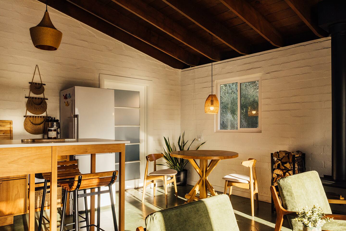 Light defines the architecture. High vaulted ceilings and custom folding glass doors pull daylight deep into the space and open the living room fully onto the patio. The interiors feel open, calm, and intentional—built around flow, stillness, and ease of living.