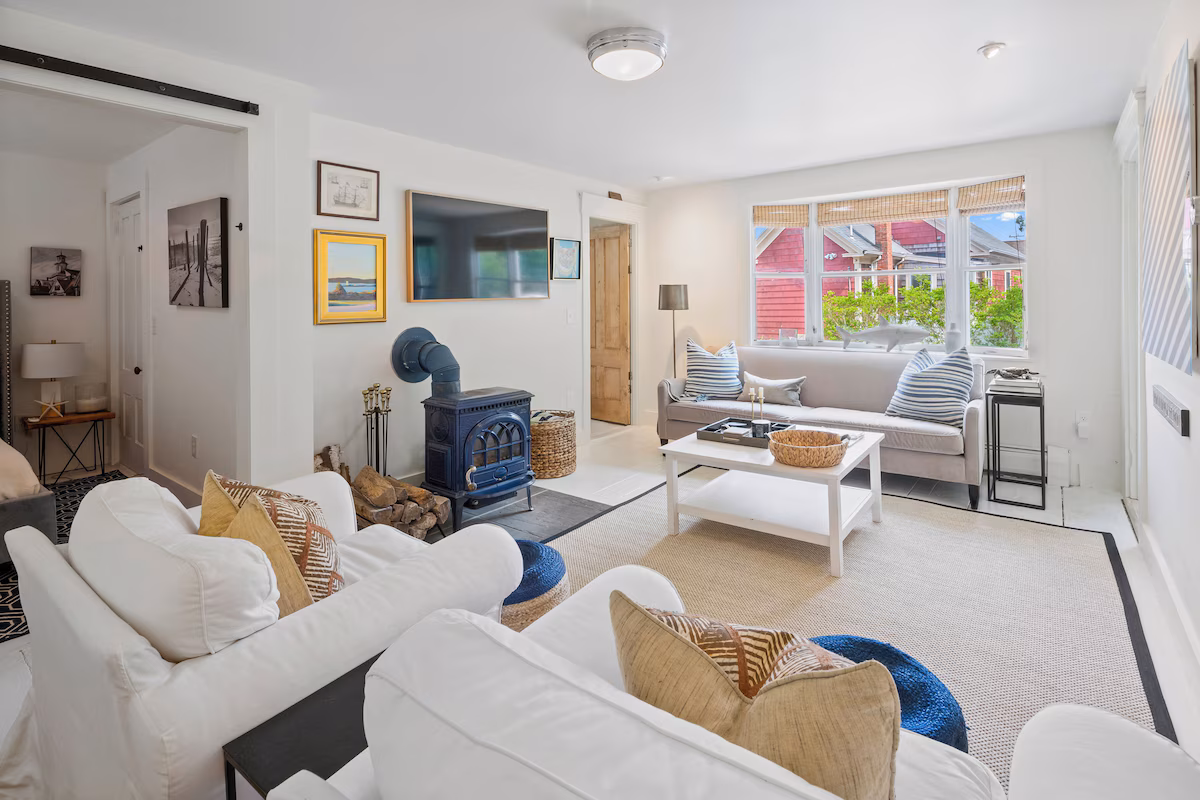Nestled in the charming streets of Provincetown, this historic home blends classic 1860s details with modern comfort—where original pine floors meet bright, airy interiors, and every space feels welcoming and effortless.