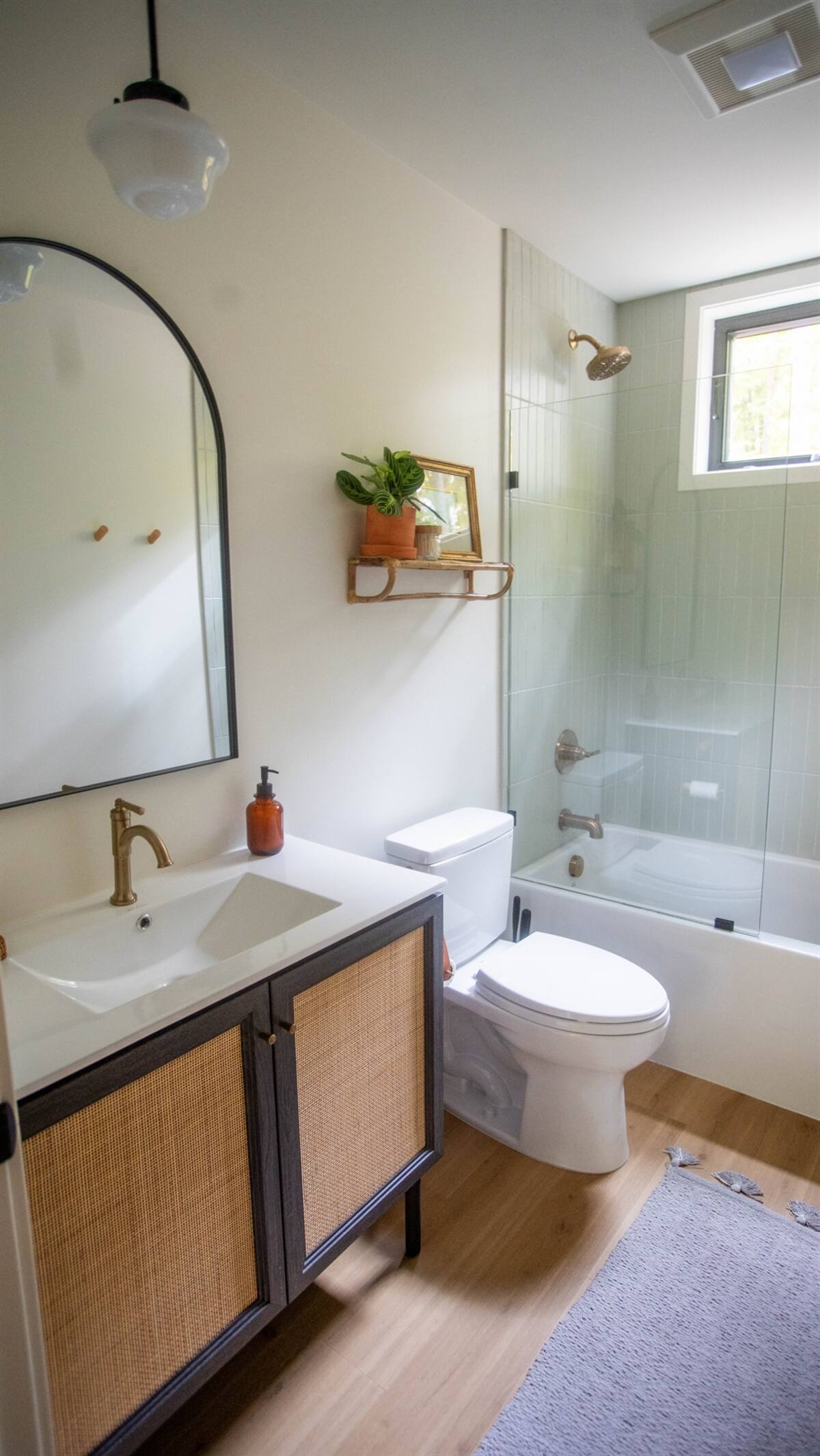 The open-concept first floor is designed for connection and comfort. A coffee bar, dining area, and modern kitchenflow seamlessly into the large family room and parlor, which feature 30 ft. vaulted pine ceilings, glass sliders, and 7 ft. windows that frame the surrounding woods. Two queen bedrooms, a full bathroom, and a stacked washer/dryer closet complete the first floor.