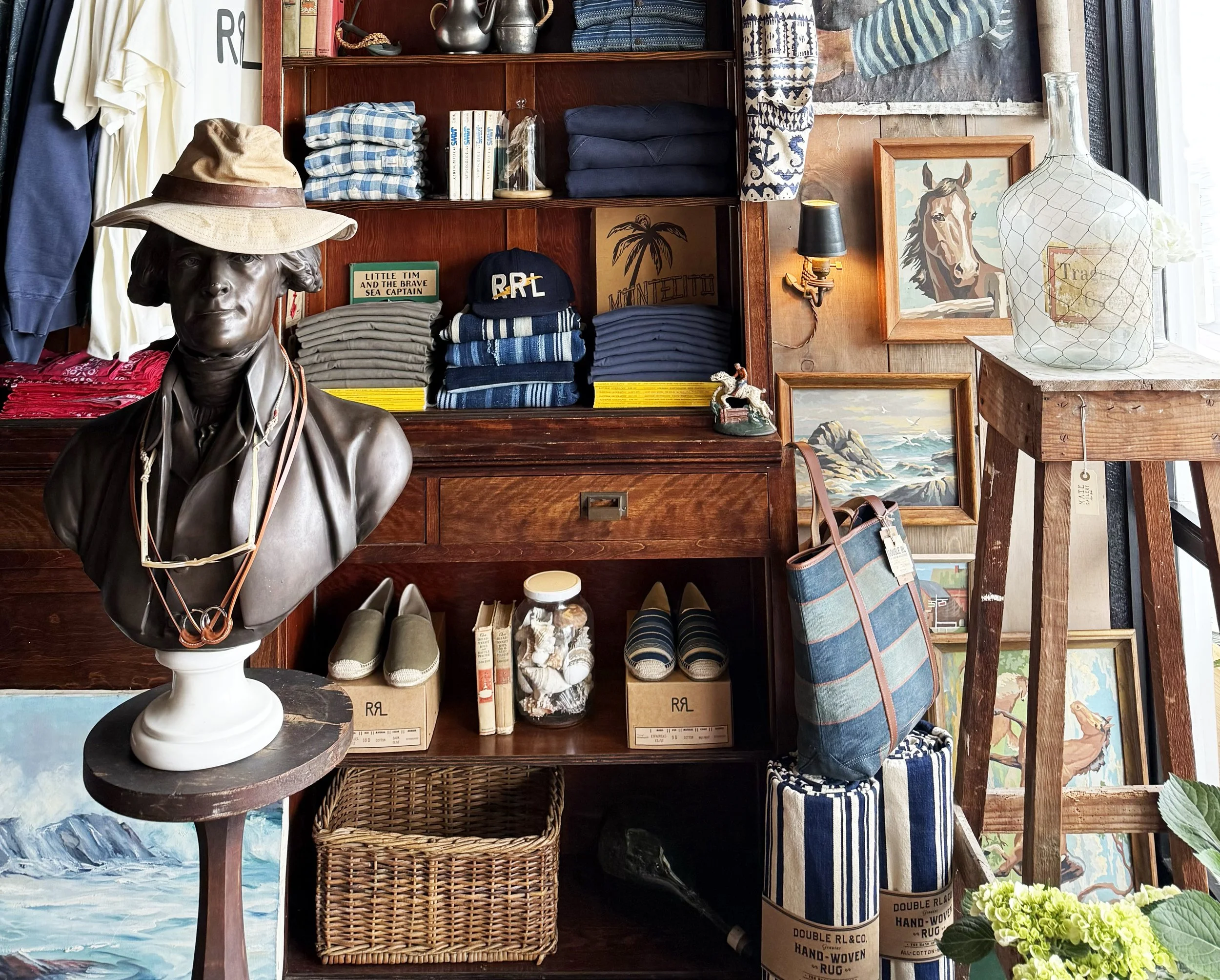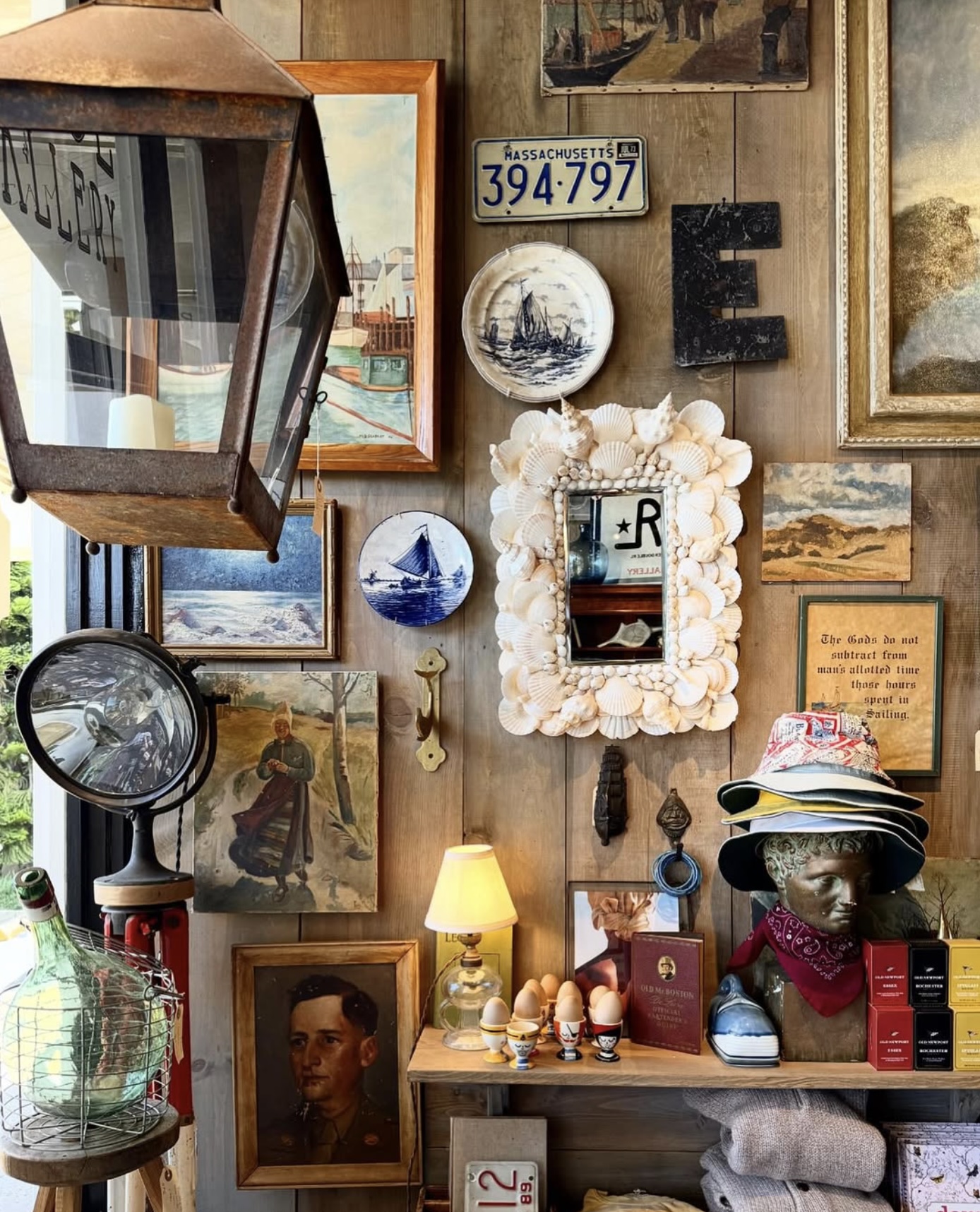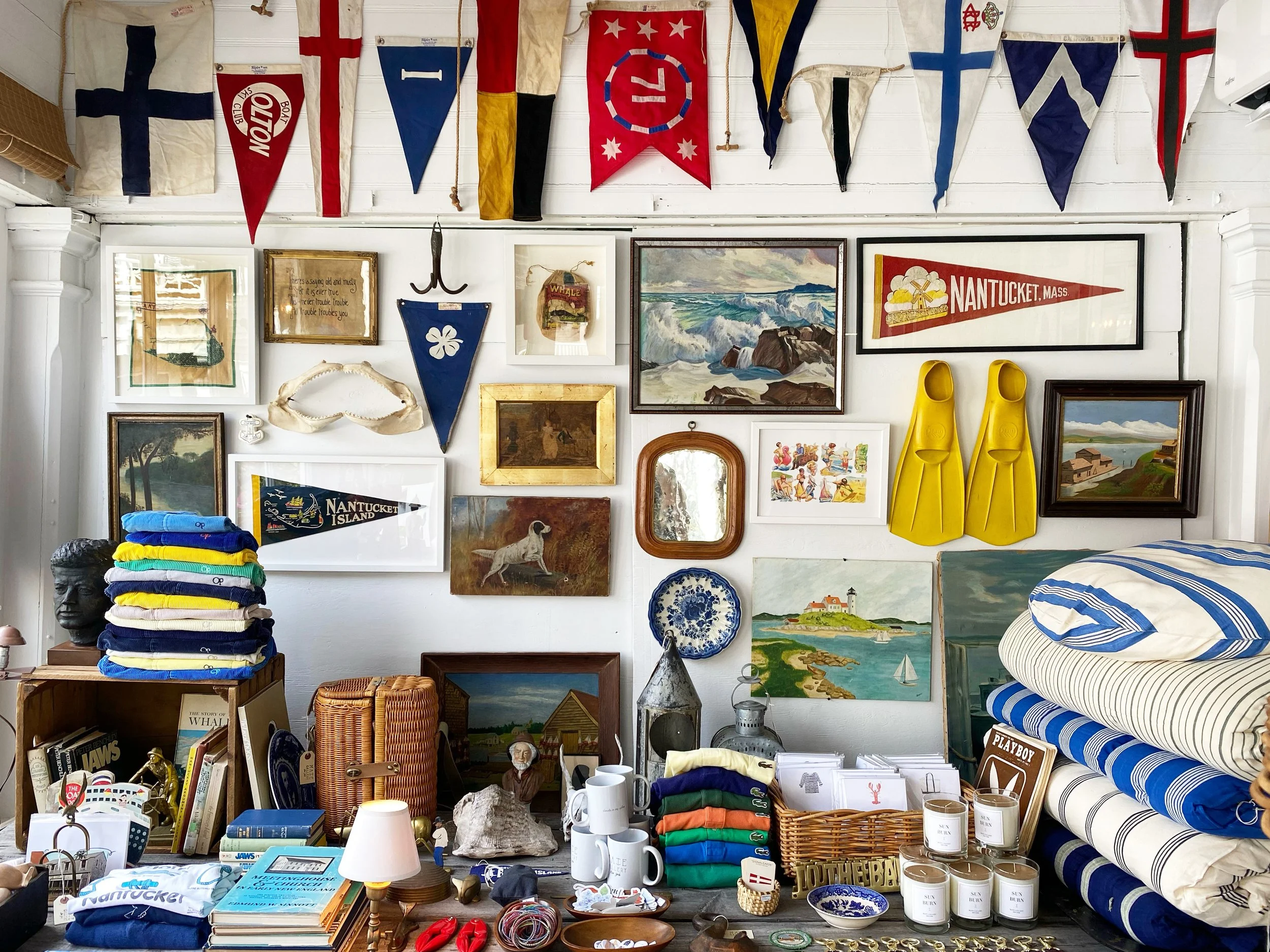 - Vintage nautical pieces—buoys, flags, ship ephemera.